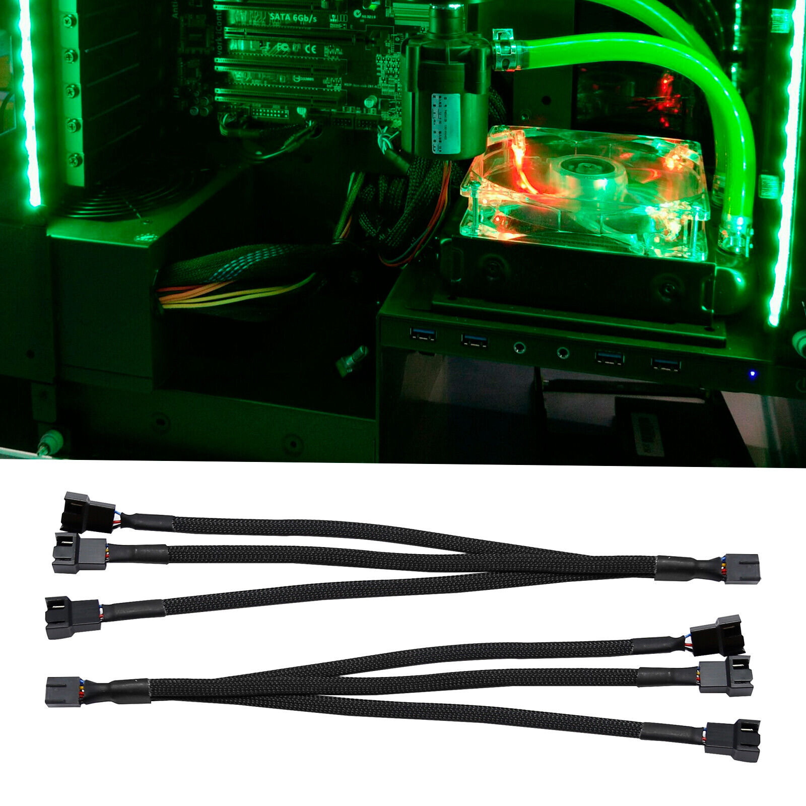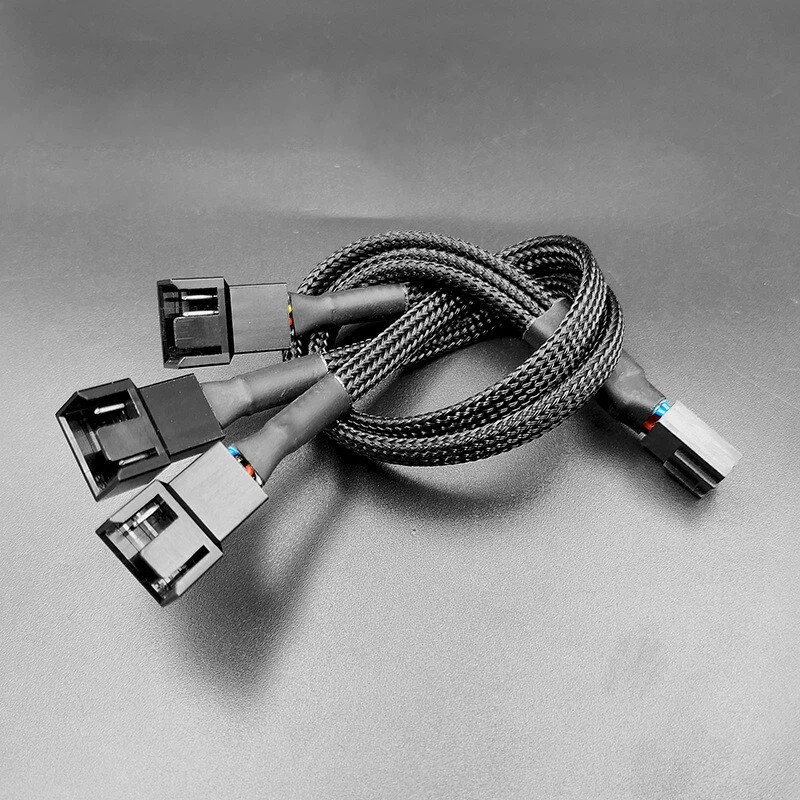 The PWM fan splitter connects 3 computer fans to one motherboard fan header, used to install more fans to keep the PC cool.