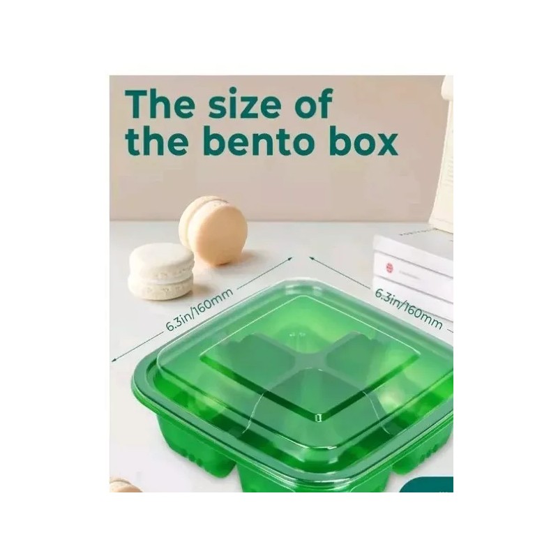 This set of four plastic bento take-out containers is perfect for those who want a convenient and stylish way to store and transport food. The square shape of the containers makes them easy to stack and store in your kitchen or on-the-go. Each container is made of thin plastic and is reusable or disposable. The set includes four containers. The containers are perfect for snacks ,storing leftovers or food prep.