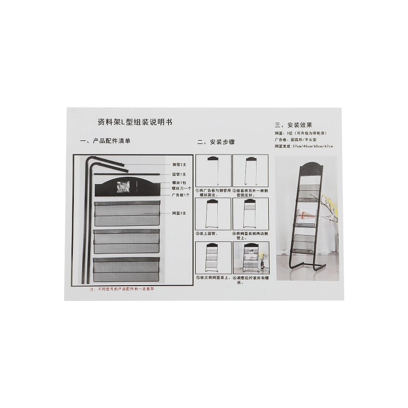 Sorting Arrangement: The four-layer mesh basket design allows you to display magazines and newspapers in various types and themes, such as literature, art, technology, and sports. Readers can find the magazine or newspaper they need in the floor-standing magazine rack and choose according to their needs.