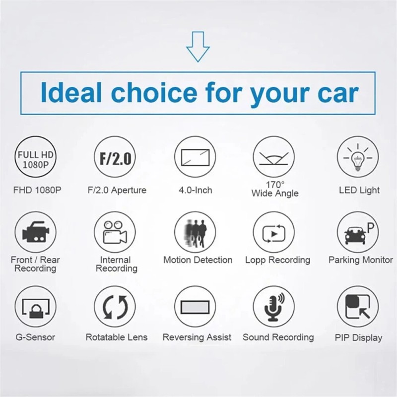 Unbranded 4" Touch Screen Dash Cam 1080P Dual Lens Car DVR Recorder Front and Rear Camera