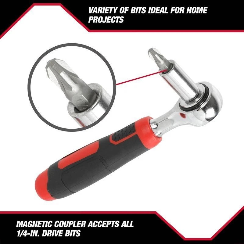 Comes with clear Click-Fit storage case Compatible with the Click-Fit interlocking case system Great for automotive, home repair, and general maintenance (28) 1-in. Screwdriver Bits (1) 1/4-in. Drive Reversible Ratchet (1) 1/4-in. Drive x 3-in. Extension Bar (9) 1/4-in. Drive 6-point Sockets: SAE: 3/16, 1/4, 9/32, 5/16, 11/32, 3/8, 1/2-in. , Metric: 10, 13mm (4) Slotted: 1/8, 5/32, 3/16 & 1/4-in (4) Philips: #0, #1, #2 & #3 (8) Star: T10, T15, T20, T25, T27, T30, T35 & T40 (4) Hex: 1/8, 5/32, 3/16 & 1/4-in. (4) Pz: #0, #1, #2 & #3 (4) Square: S0, S1, S2 & S3 (1) Coupler New