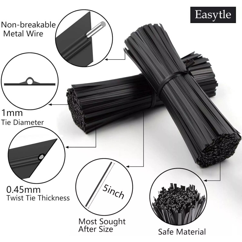 - SAFE MATERIAL: Black twist ties are safe, odor free and pleasant to use. Black plastic coated ties contain no hazardous impurities. The premium quality of twist bread ties material ensures maximum safety for our customers.