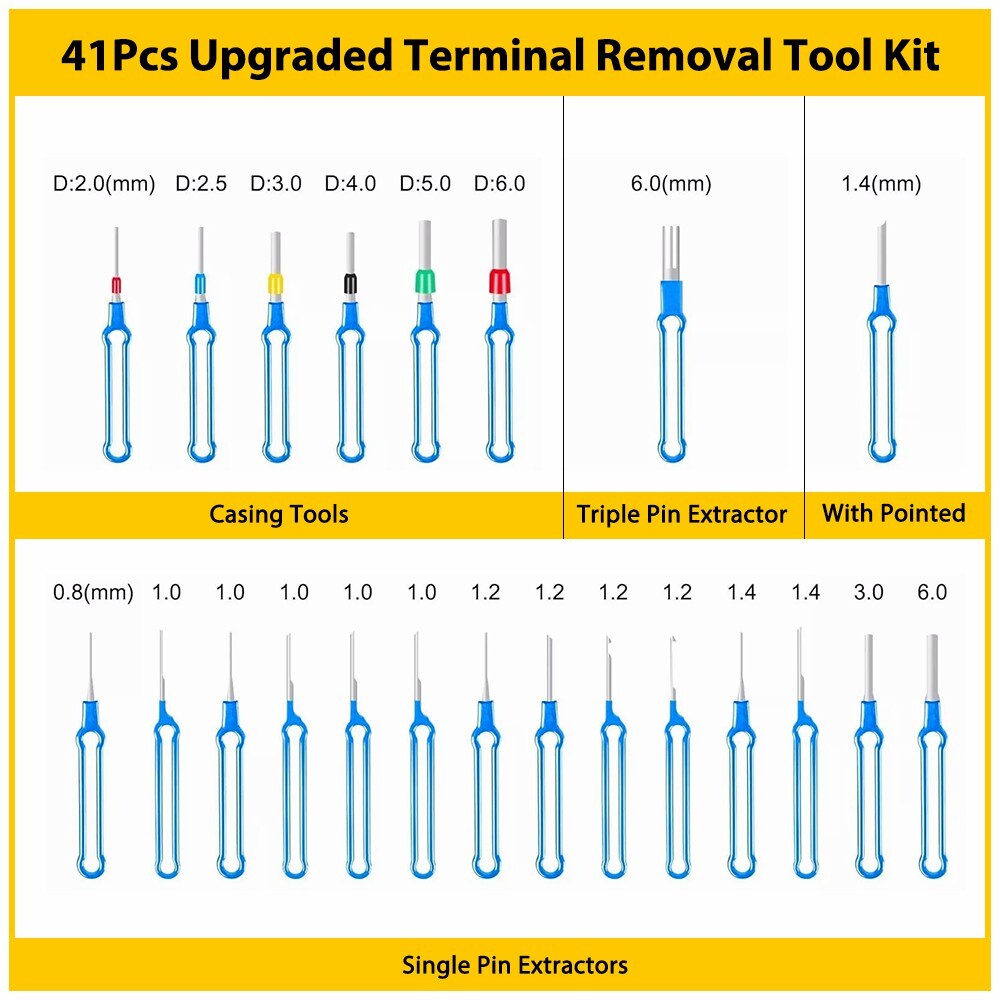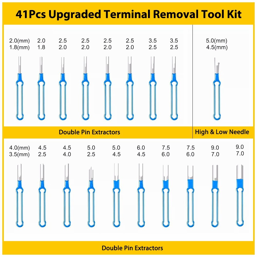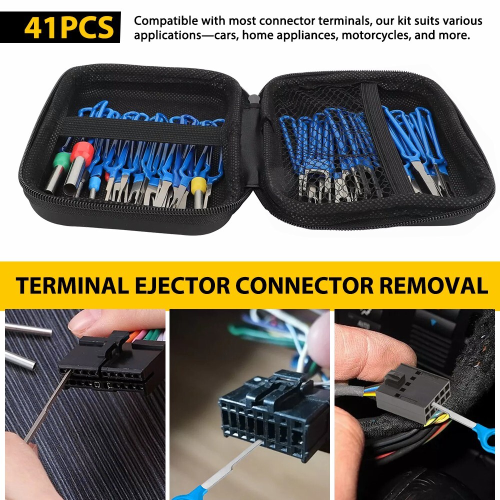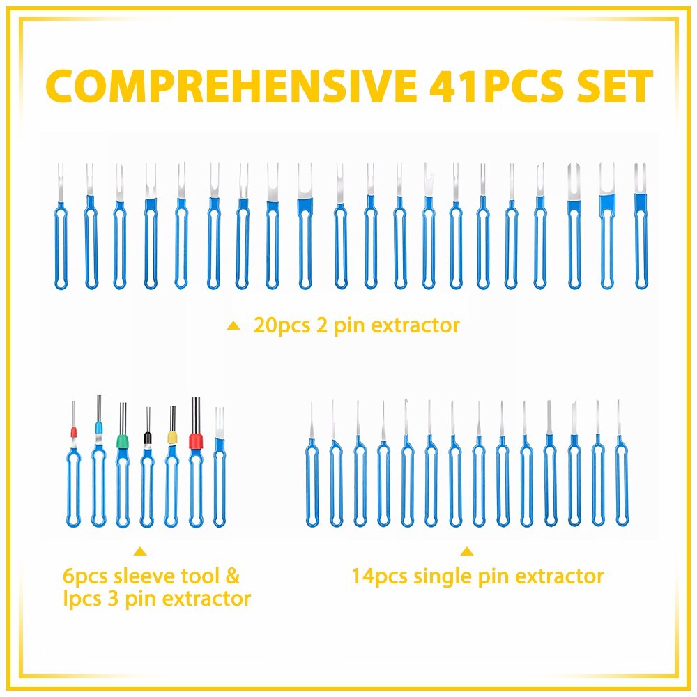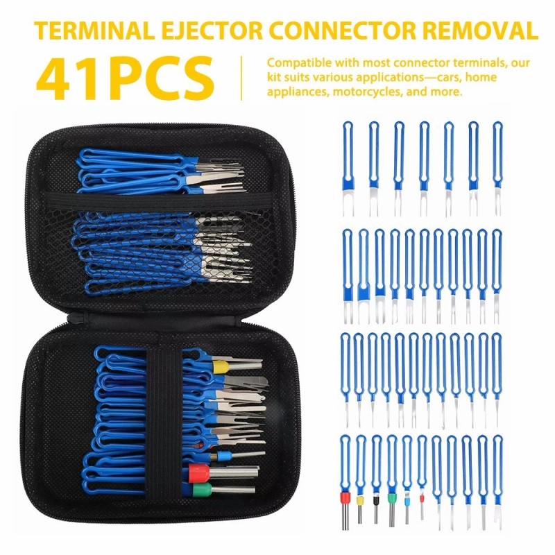 41Pcs Terminal Removal Tool Blue Electrical Wire Connector Pin Ejector Extractor