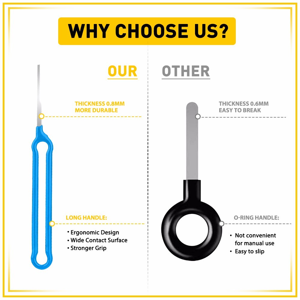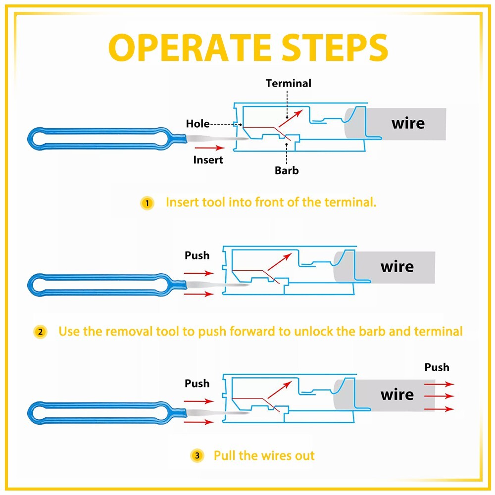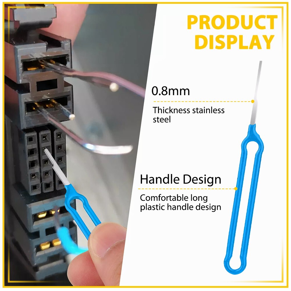 The electric needle removal tool is easy to use, push and pull the terminal pin with the connector needle removal tool, you can effortlessly remove from the wire harness connector without causing any damage.