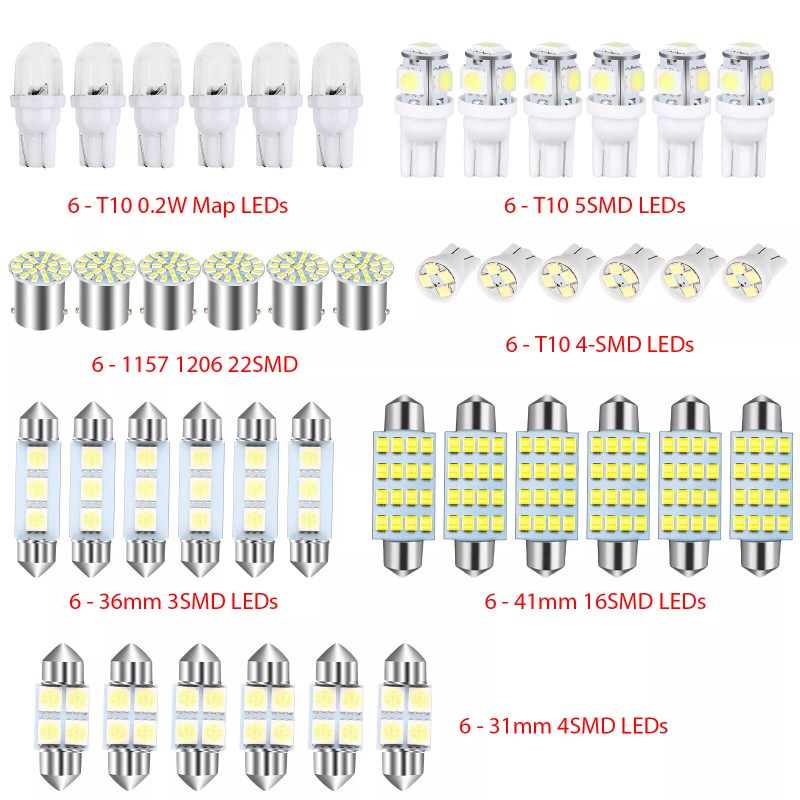 Package Included42Pcs Car Interior LED Light Bulbs Kit is including:- ✅ 6 x 31mm 6-SMD LEDs