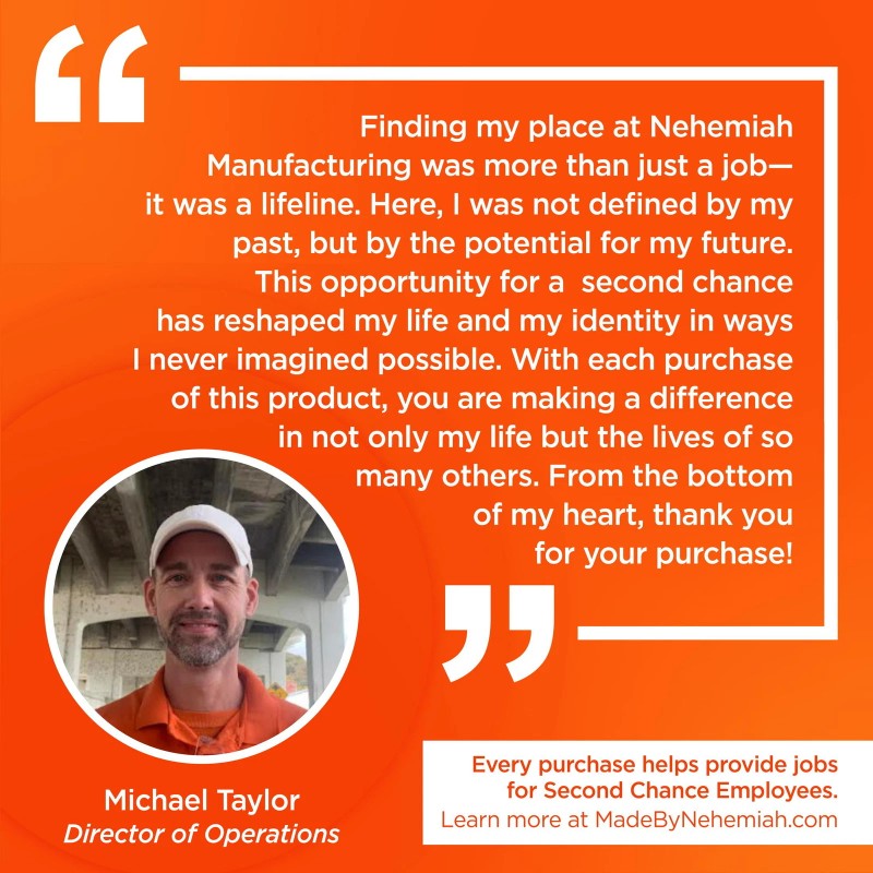 - PROUDLY MADE BY NEHEMIAH MANUFACTURING CO, A SECOND CHANCE COMPANY: Every purchase helps provide jobs for Second Chance Employees
