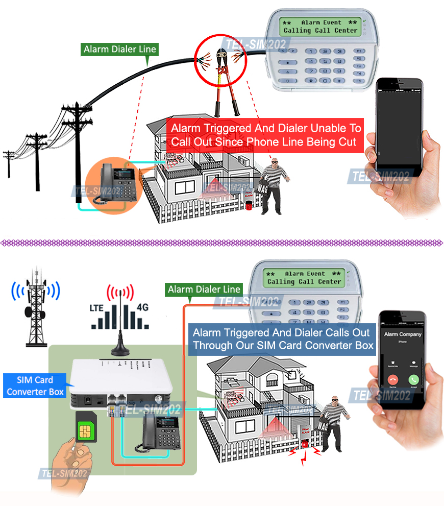Also a great phone dialer for alarm security system with auto dial function to call out to the monitoring center or home owner when landline is failing or not available for the location.
