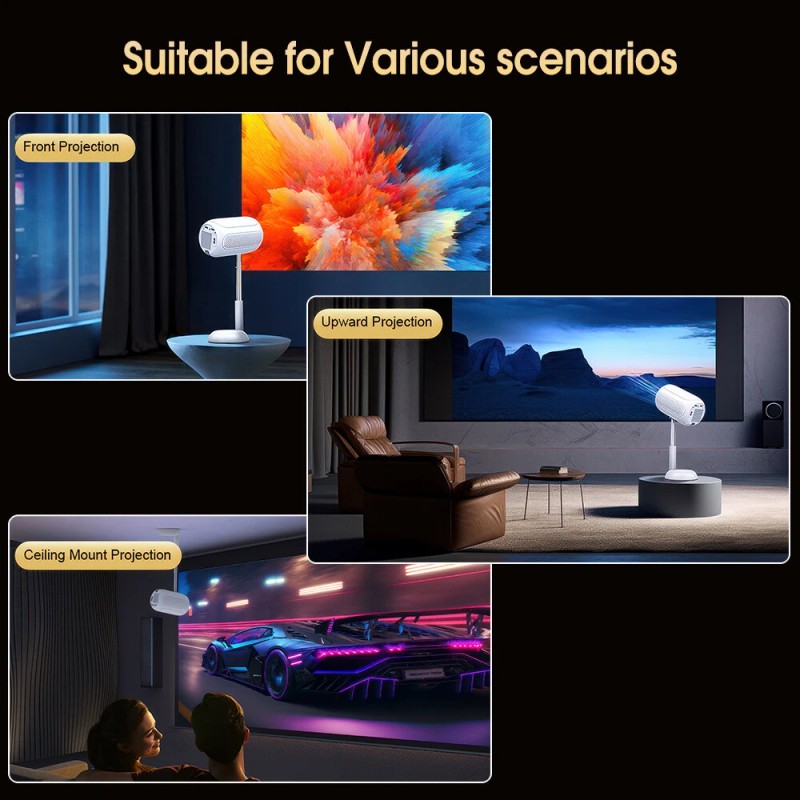 • Features: Portable, Ceiling Projection, Built-in Speakers, Folding