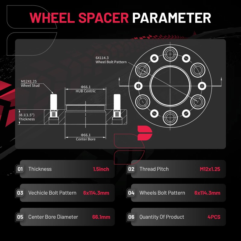 - Superseded Part Number: 6x114.3 wheel spacers 1.5 inch thick with 12x1.25 studs