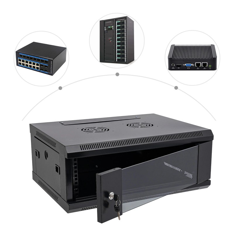 Our network wall cabinet is made of high-quality cold-rolled steel sheet and glass which is durable and has a long service life. Its locking glass panel and easy-to-open side panels can help prevent equipment damage or theft and allow access for easy maintenance. It also has a very good heat dissipation effect, which can effectively extend the service life of the equipment.