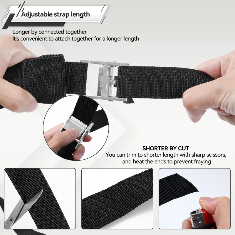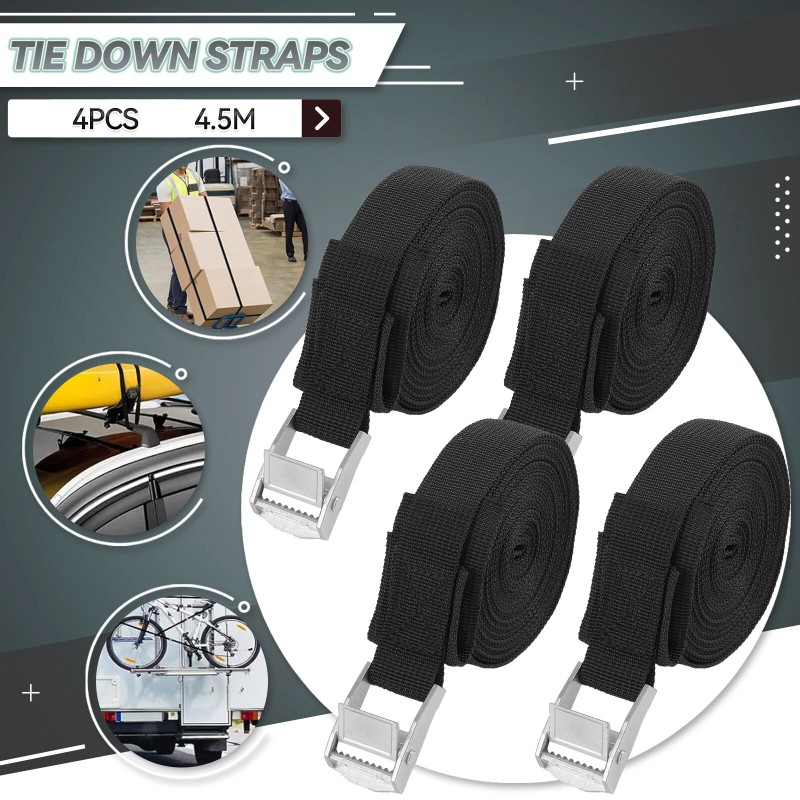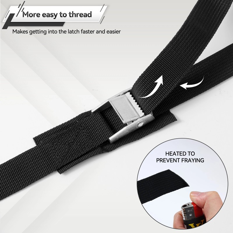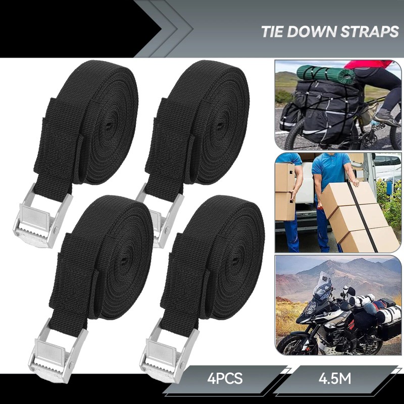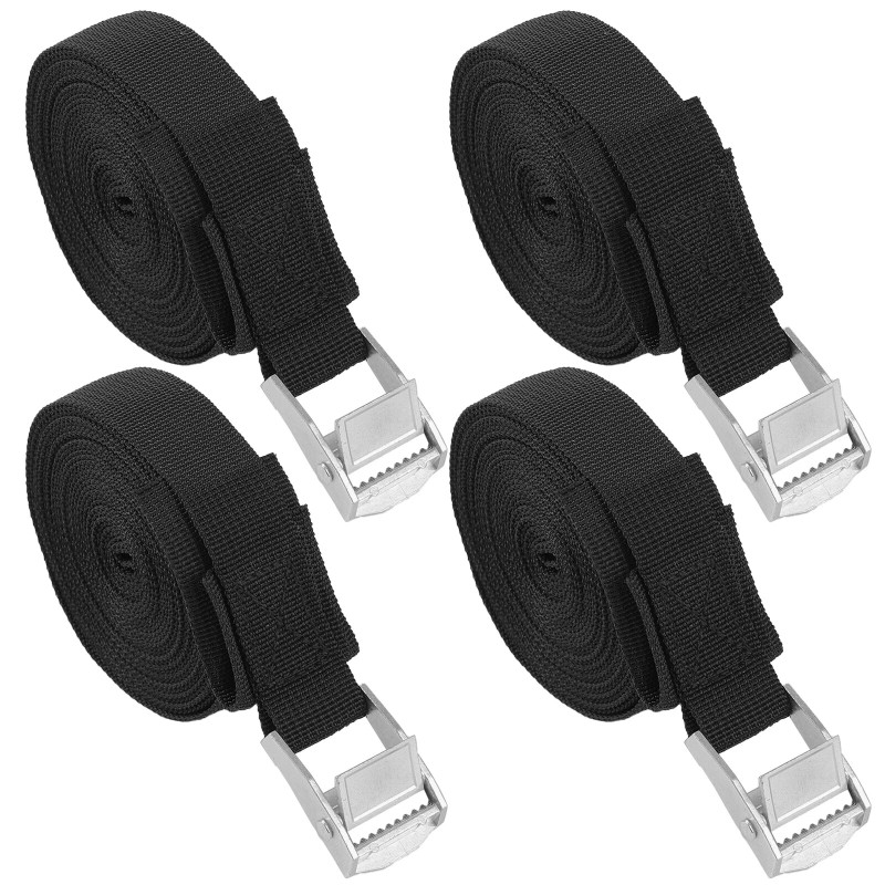 4x BLACK Lashing Straps with Buckles Adjustable Cam Buckle Tie Down Cinch Strap