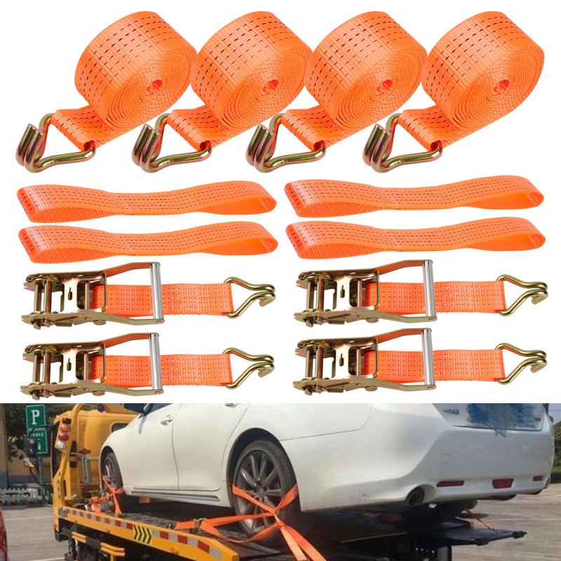 Unbranded 4x Ratchet Tie Down Straps 2" x 13 J-Hook Trailer Car Tire Wheel Link Straps