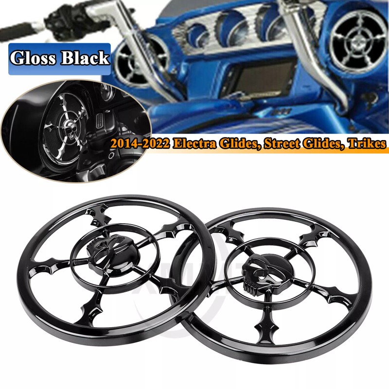 Unbranded 5-1/2" Gloss Black Speaker Grills Cover Trim for Harley Touring FLHT FLHX 14-22