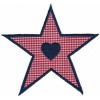 Description: This is a listing for a red gingham star with embroidered heart embroidery patch.