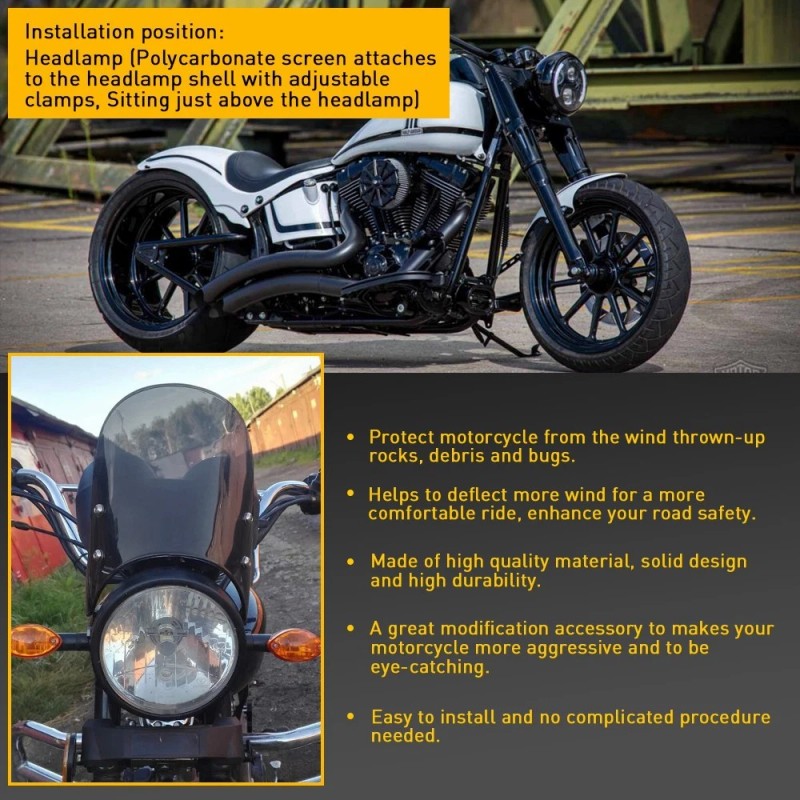 Modification Description | Universal Motorcycle Windscreen Windshield for 5"-7'' |