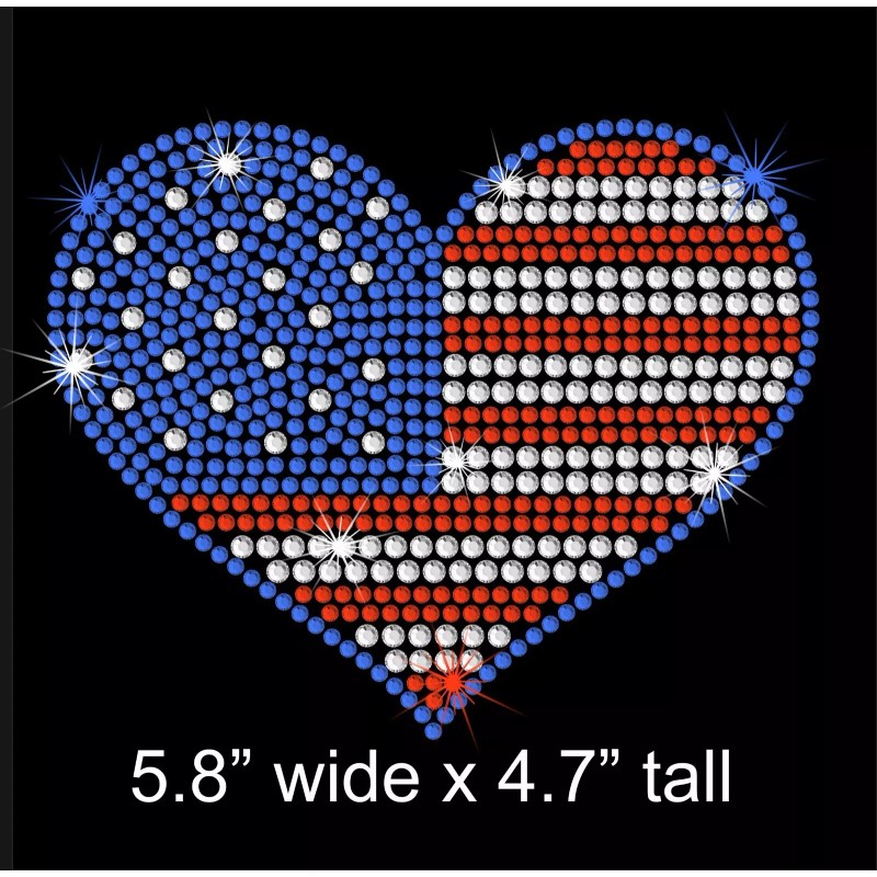 Unbranded 5.8" RED WHITE BLUE rhinestone iron-on transfer July 4 American flag