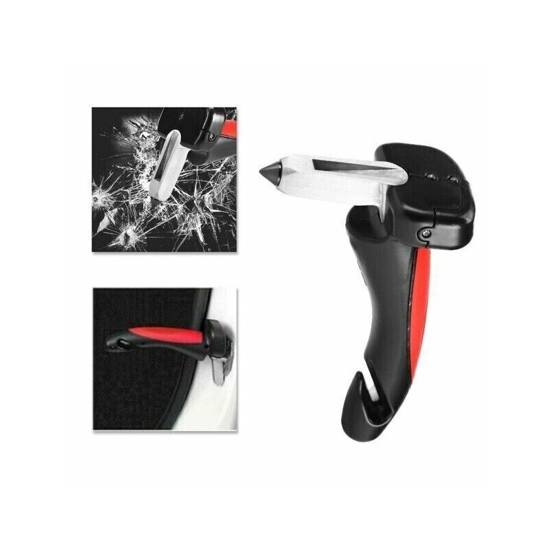 - The unique design is prepared for all situations and includes a window breaker, seatbelt cutter, and super bright LED flashlight, batteries included.
