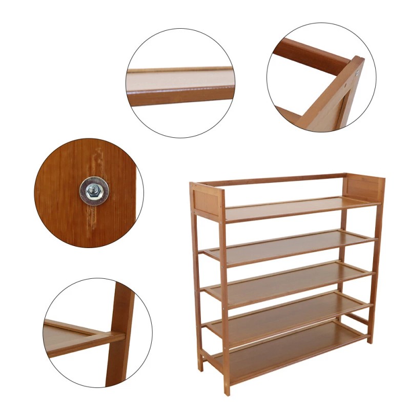Unbranded 5 Layers Natural Wood Bamboo Shelf Entryway Storage Shoe Rack Home Furniture.