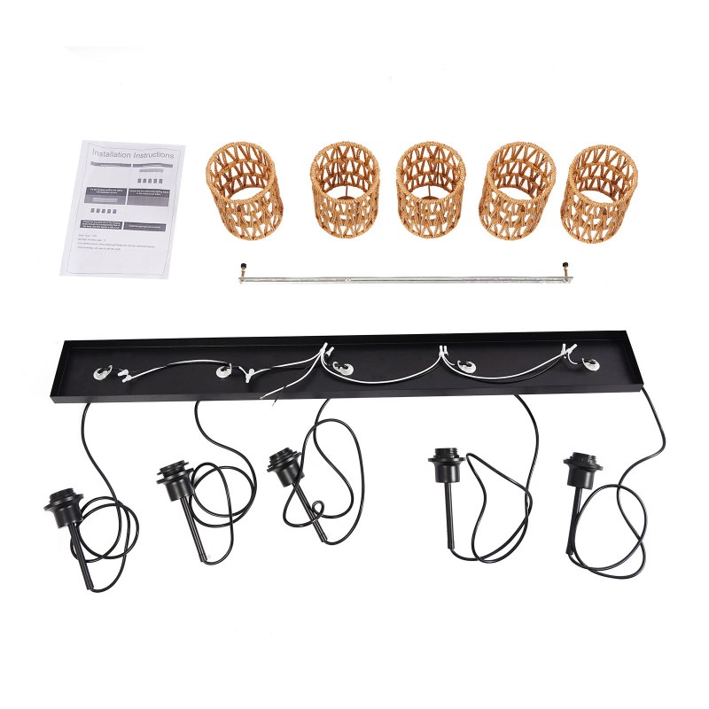 Elegant Appearance: The classic black scheme and hemp rope show elegance and 5 well-arranged lamps have a sense of harmony and spatial aesthetics, which can can be integrated into most of the use of scenarios, to bring you elegant artistic enjoyment.