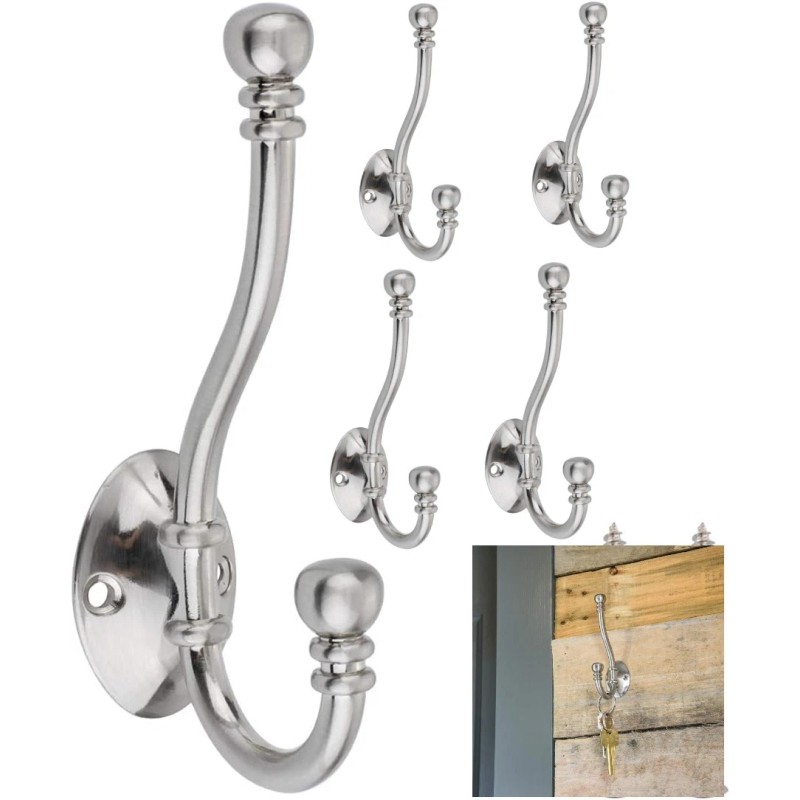 5-piece satin nickel coated hooks for storage of jackets, hats, towels, accessories, etc.
