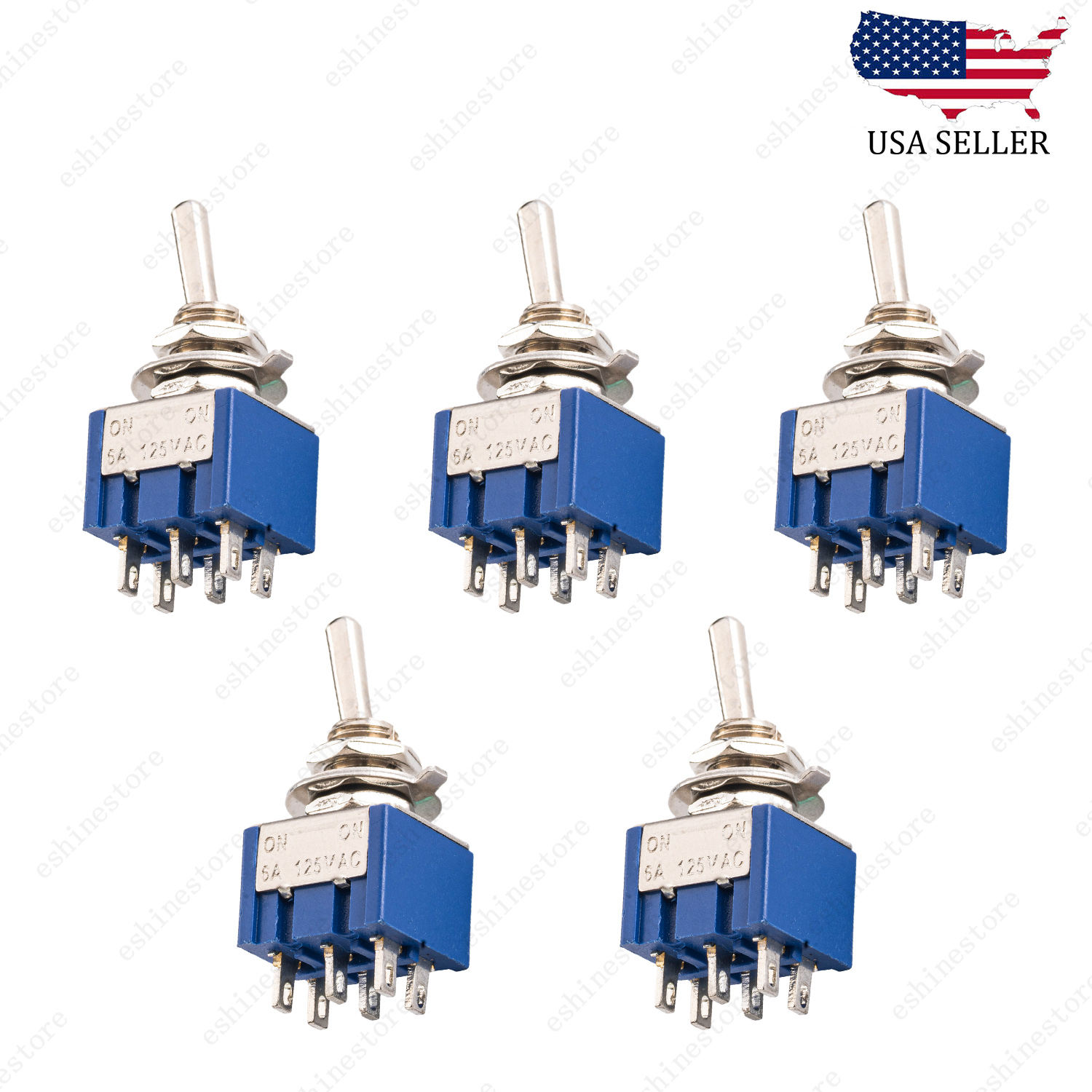 Unbranded () 5 Pcs DPDT Blue 2 Way 6 Pin ON ON Guitar Mini Toggle Switch Car/Boat Switches