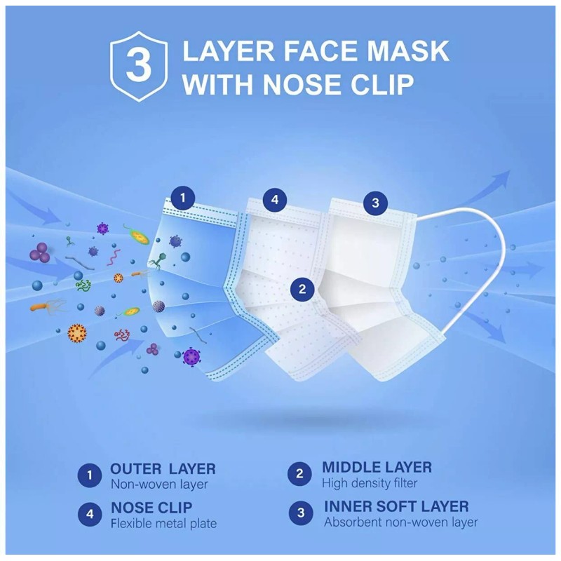 - Each mask is made of soft, non-woven blue material for long-lasting comfort.