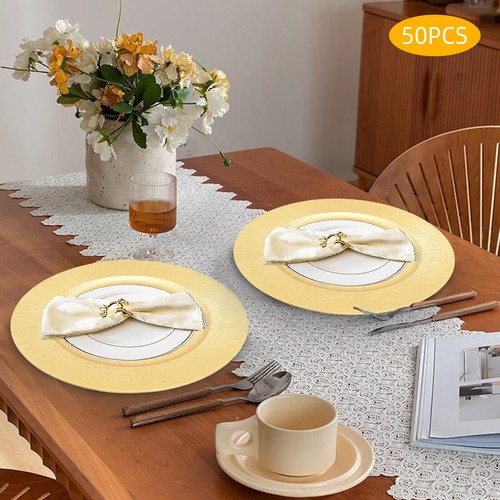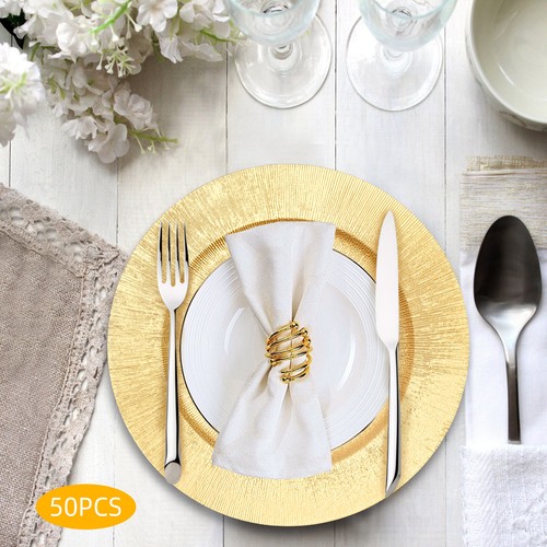Unbranded 50-piece Charger Plates set Gold Round Dinner Plates Trim Party Eve...