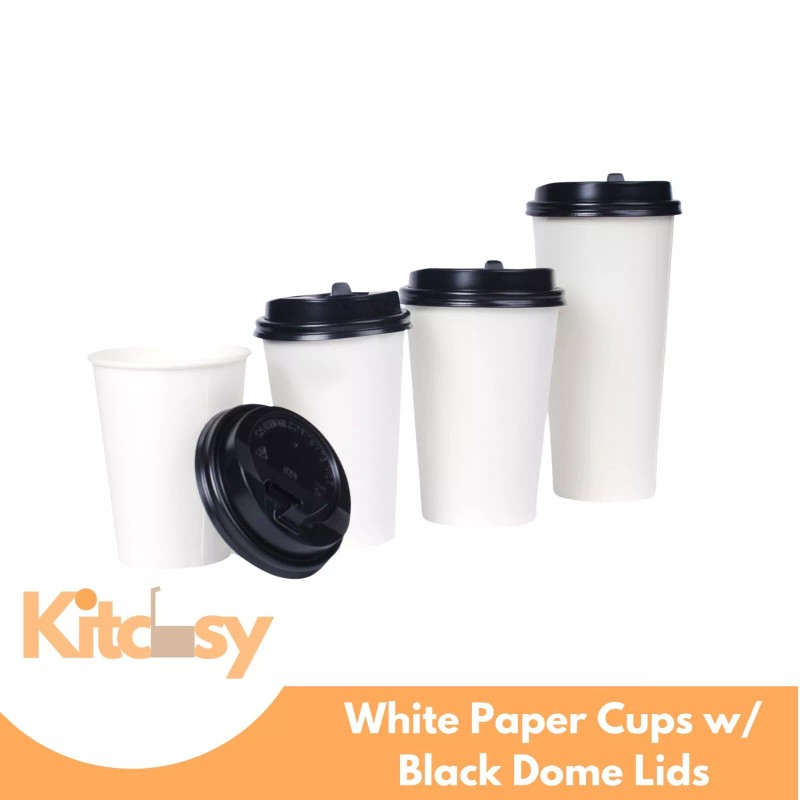 Unbranded 500 Ct. Eco Friendly White Poly Paper Hot Coffee Cups w/ Black Dome Lids 20 oz.