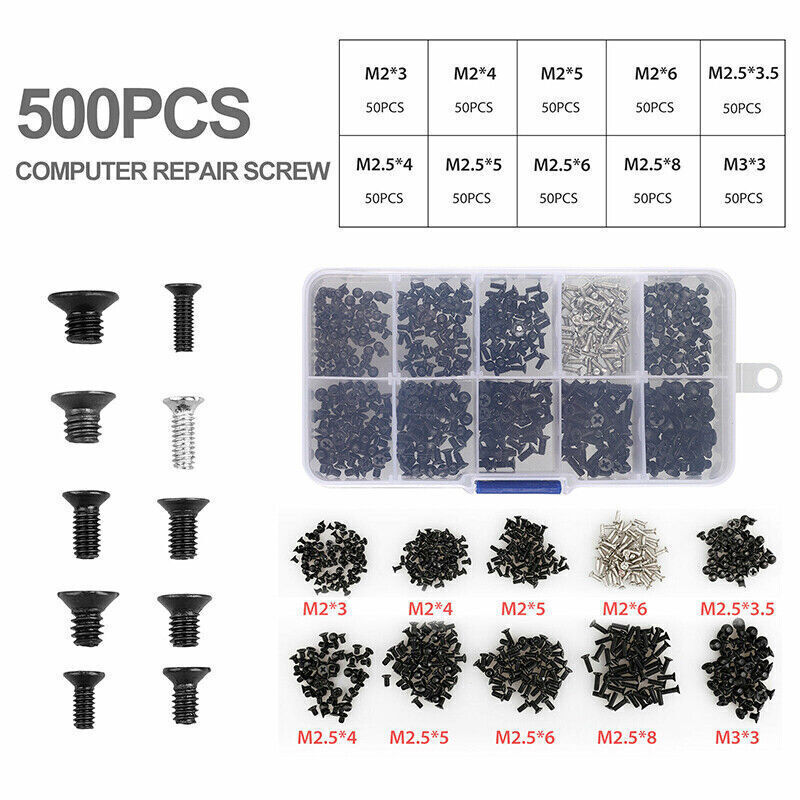 Unbranded 500Pcs M2 M2.5 M3 10 Sizes Laptop Computer Notebook Repair Steel Screws Kit