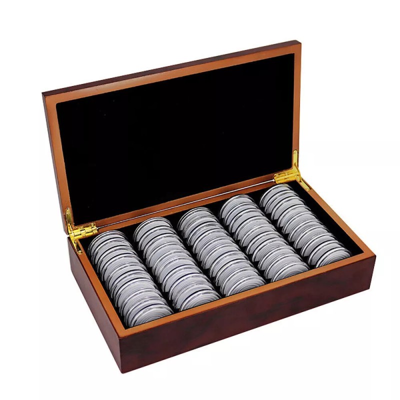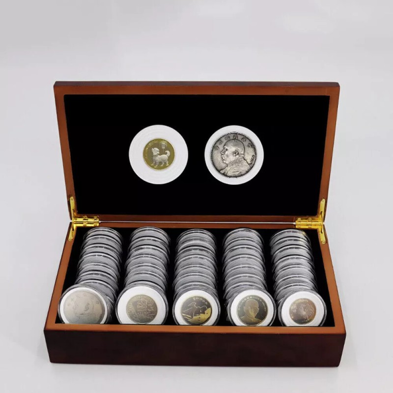 Unbranded 50Pcs 46MM Coins Capsules w/Wooden Storage Box Cushion Container Collection Case