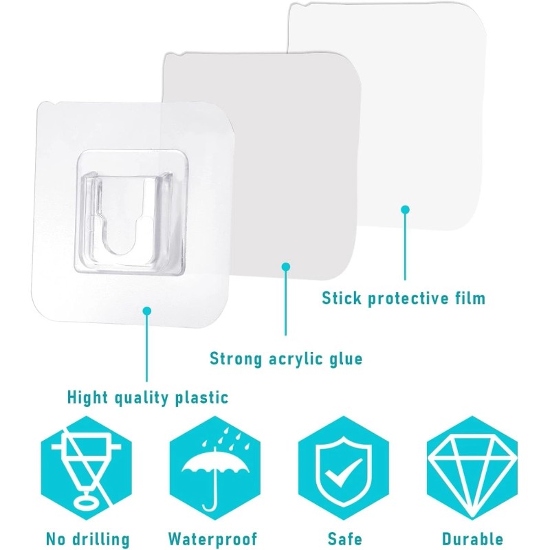 - 【Double-Sided Transparent Design】The double-sided design makes transparent self-adhesive wall hooks for hanging have no holes when hanging, replacing large and ugly adhesive hooks, clear sticker hooks have strong adhesion and can be firmly fixed on the wall, providing a seamless and clean appearance.
