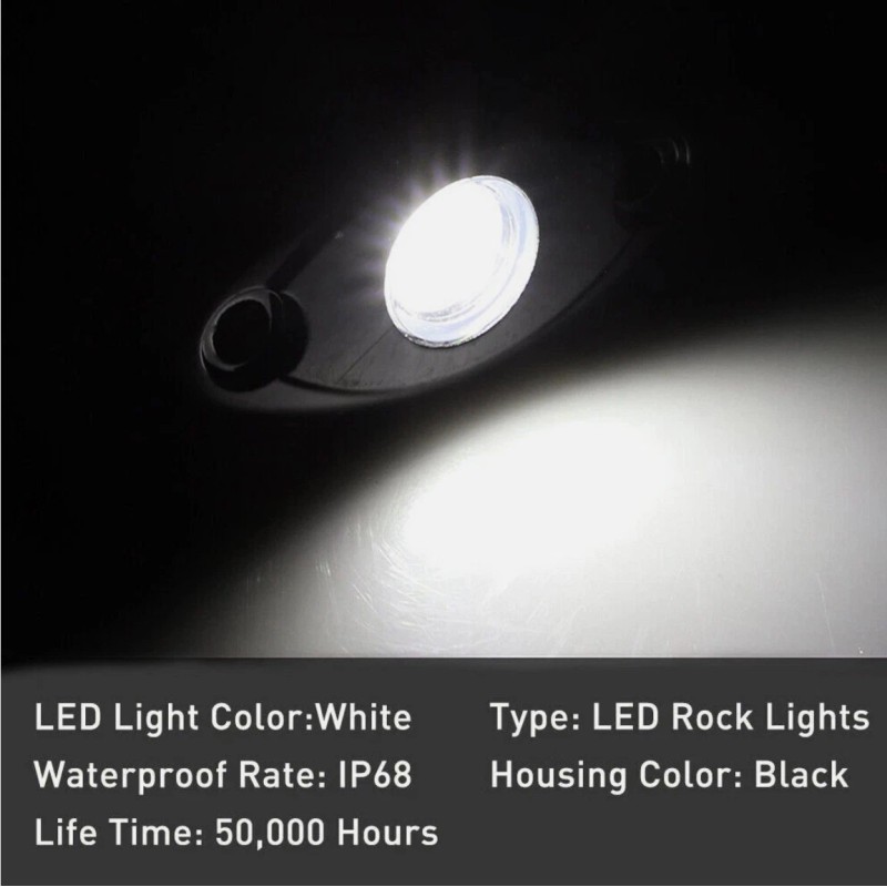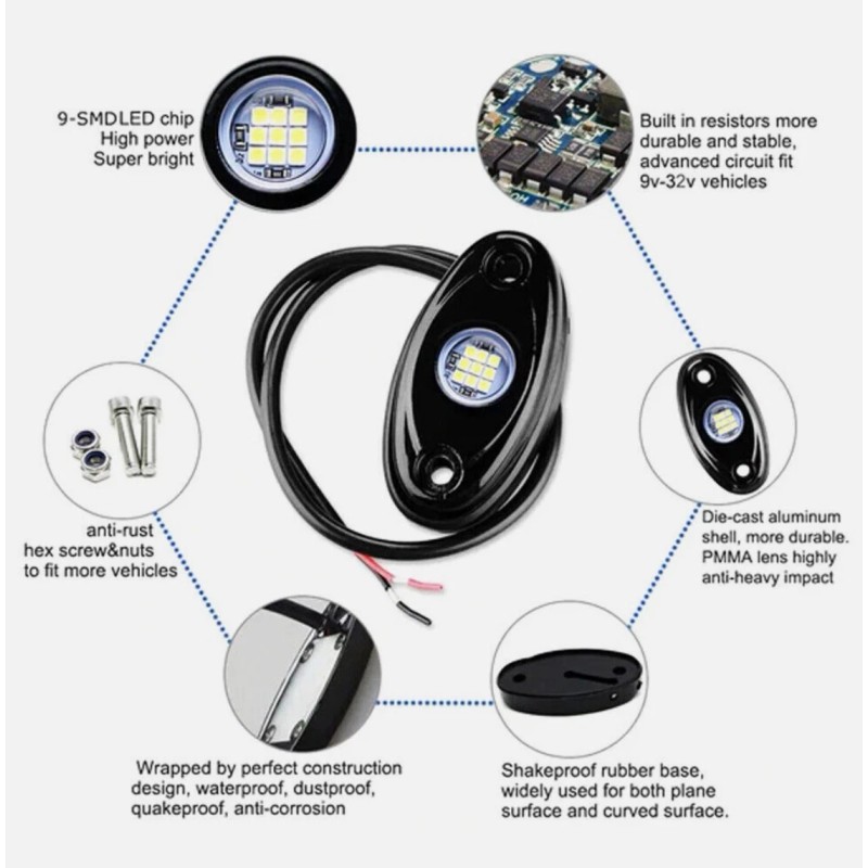 - Packaging include: 4x LED Rock Lights&1x Installation kit
