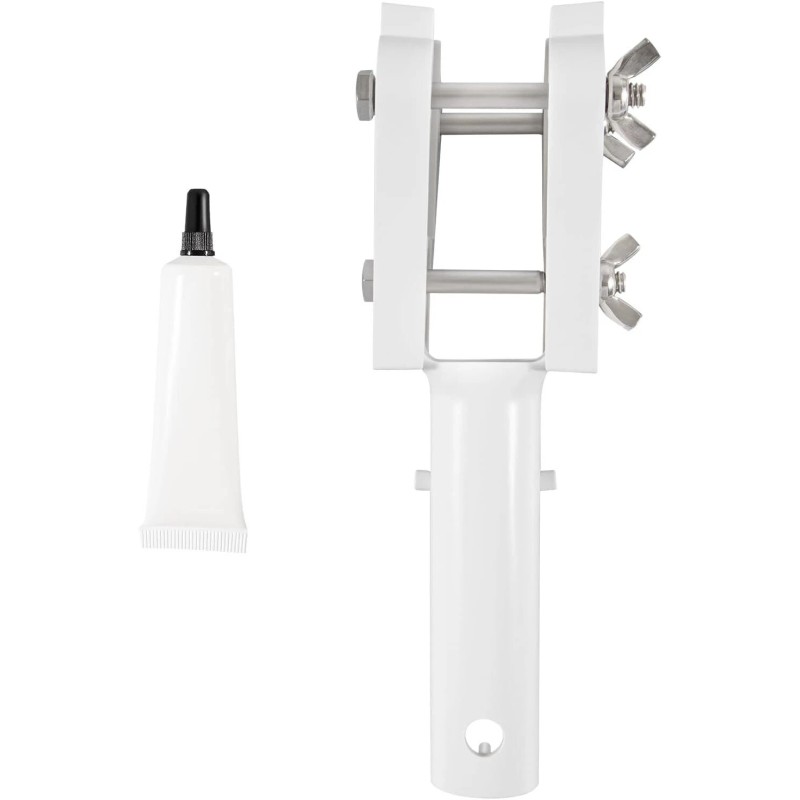 Attaches to most standard telescoping pool poles with snap-on handles. Used for holds 3" chlorIne tablet to allow scrubbing of the tablet direct to stains.