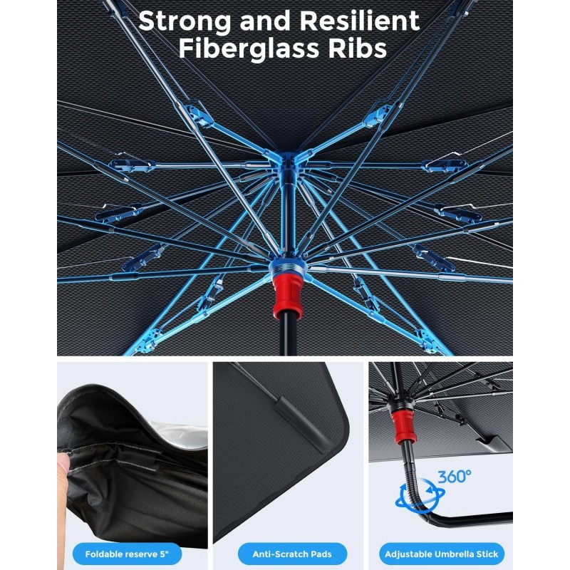 - [Strong Protection] - The car umbrella not only shields against UV rays and high temperatures to prevent damage to the car interior but also features a unique anti-scratch pad design. These soft anddurable pads effectively prevent scratches and scrapes during installation and use, safeguarding your car's Interior. After use, you can extend your vehicle's lifespan and reduce maintenance costs.