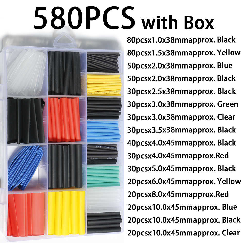 Unbranded 580 Pcs HEAT SHRINK Tubing Sleeve 2:1 Shrinkable Tube Wire Cable Assortment Kit