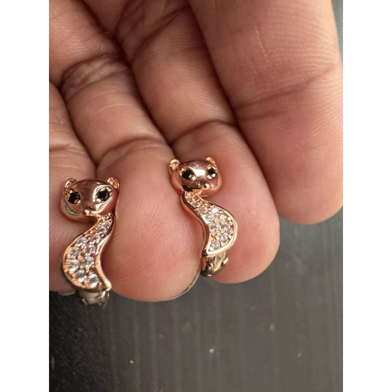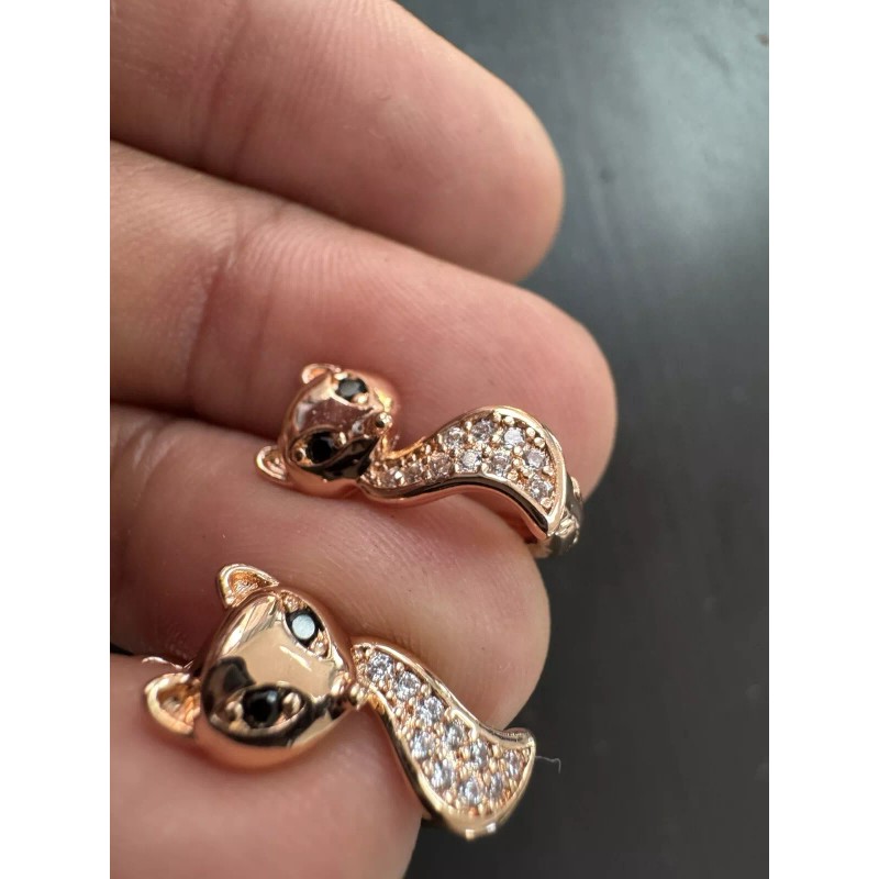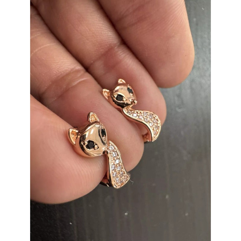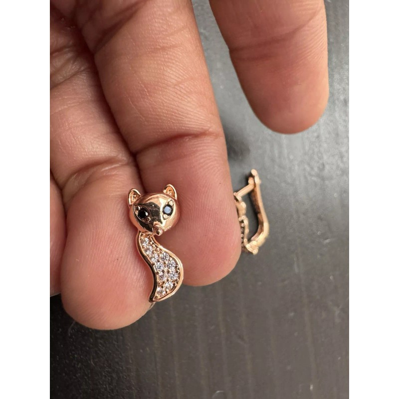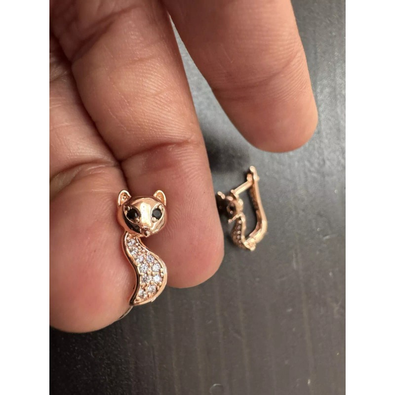 Unbranded 585 14K RG Rose Gold Stamped Natural Zircon Fox Stud Earrings