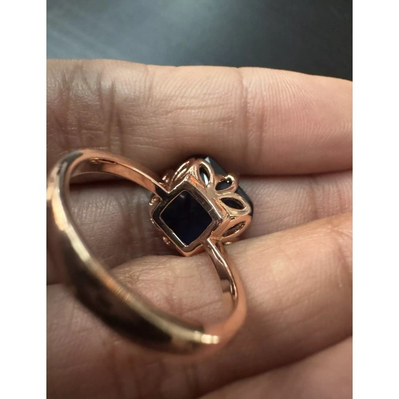 Unbranded 585 14K RG Rose Gold Stamped Square Navy Sparkle Gemstone Size 7 Ring