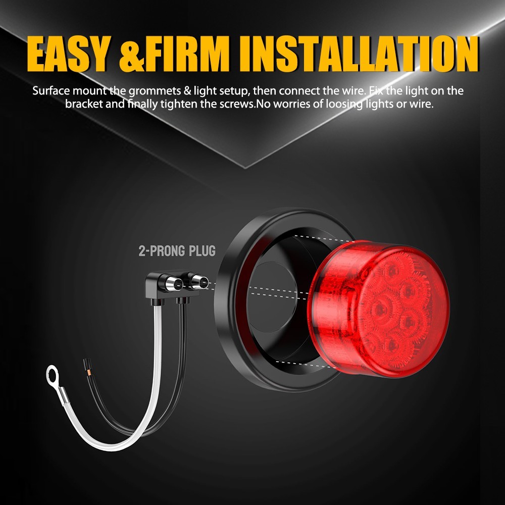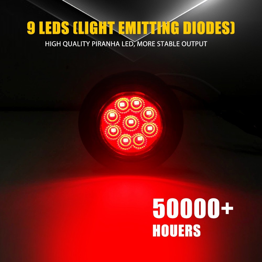 Packaging Include: 5 x 2" Round 9 LED Clearance Side Marker Light 5 x 2.8" Round Black Grommet 5 x 2-Pin 90° Plugs connector