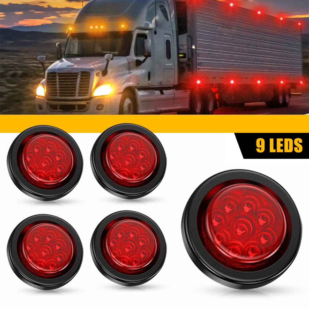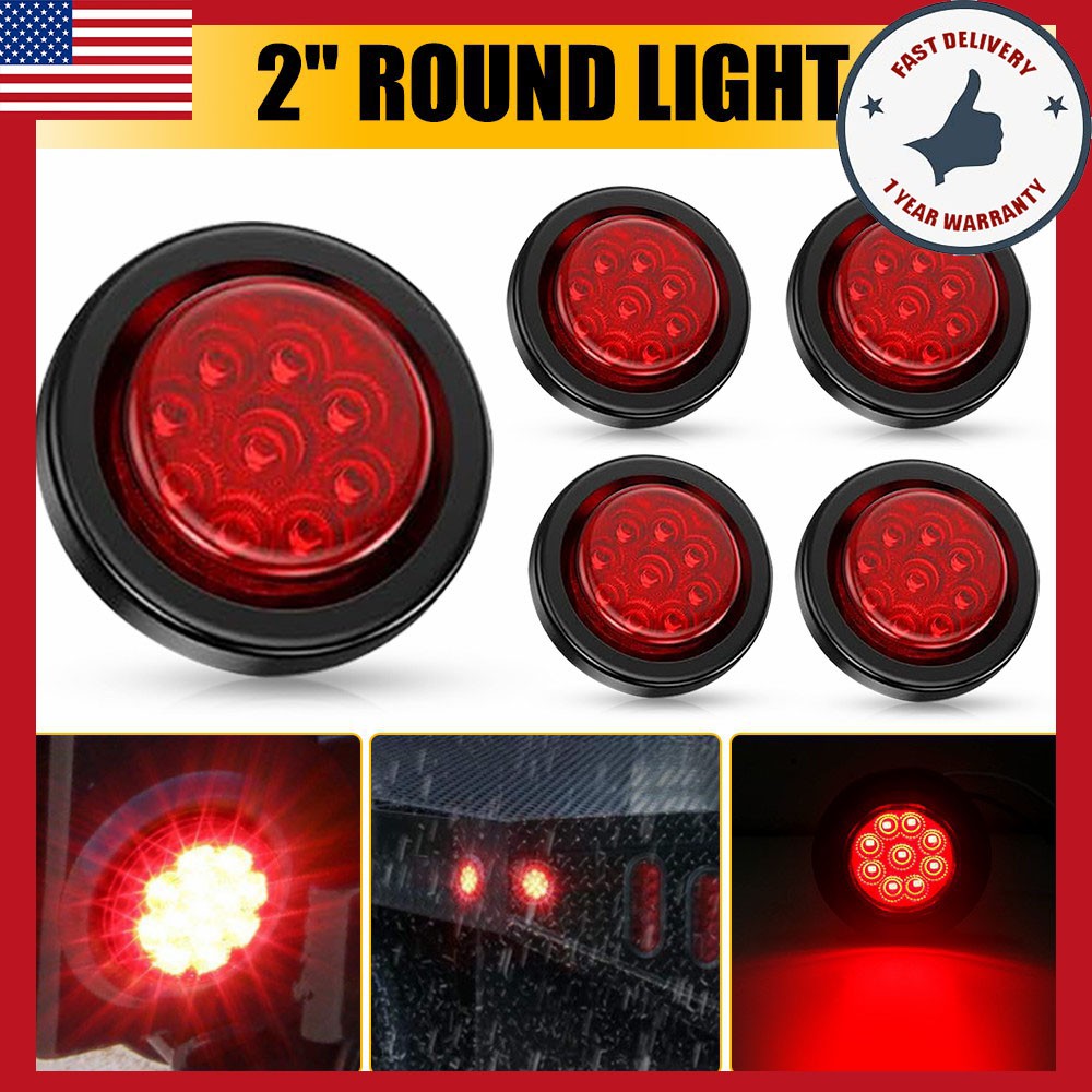 5pcs 2" Inch DOT Red Round Trailer 9 LED Marker Lights & Grommet fit Truck RV