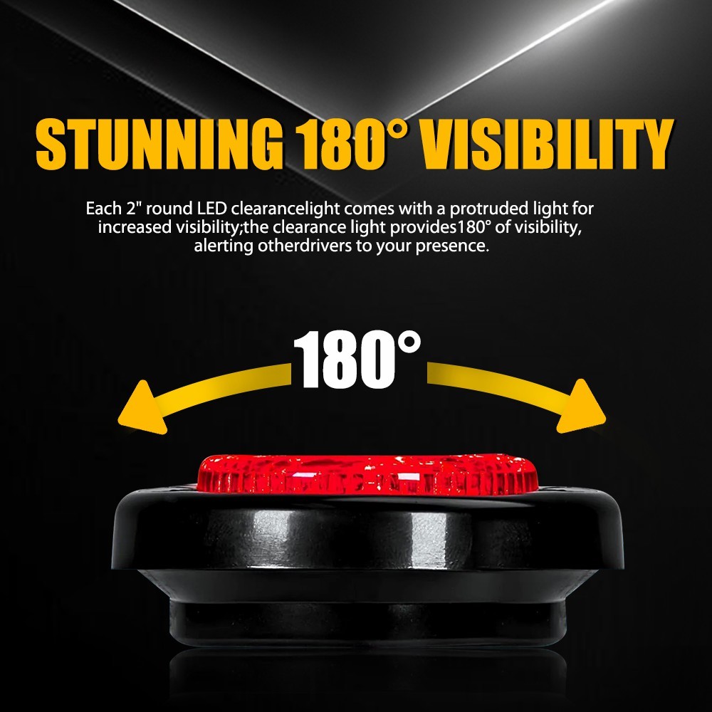 Features: *High Brightness Each LED light bright enough and energy-saving. *Superior Quality Made of high quality material to ensure its low energy consumption, good waterproof and shock resistance. *Waterproof The light has IP67 waterproof rate, which works even under extreme conditions such as rain and snow. *Wide Application This LED light can be used in any vehicle with DC 12V-24V, such as a Semi Truck and trailer, Service Truck, Bus, Service Van, Utility Truck, Parade Float, Horse Trailer, Utility Trailer, Pickup Truck, UTE, or UTV.