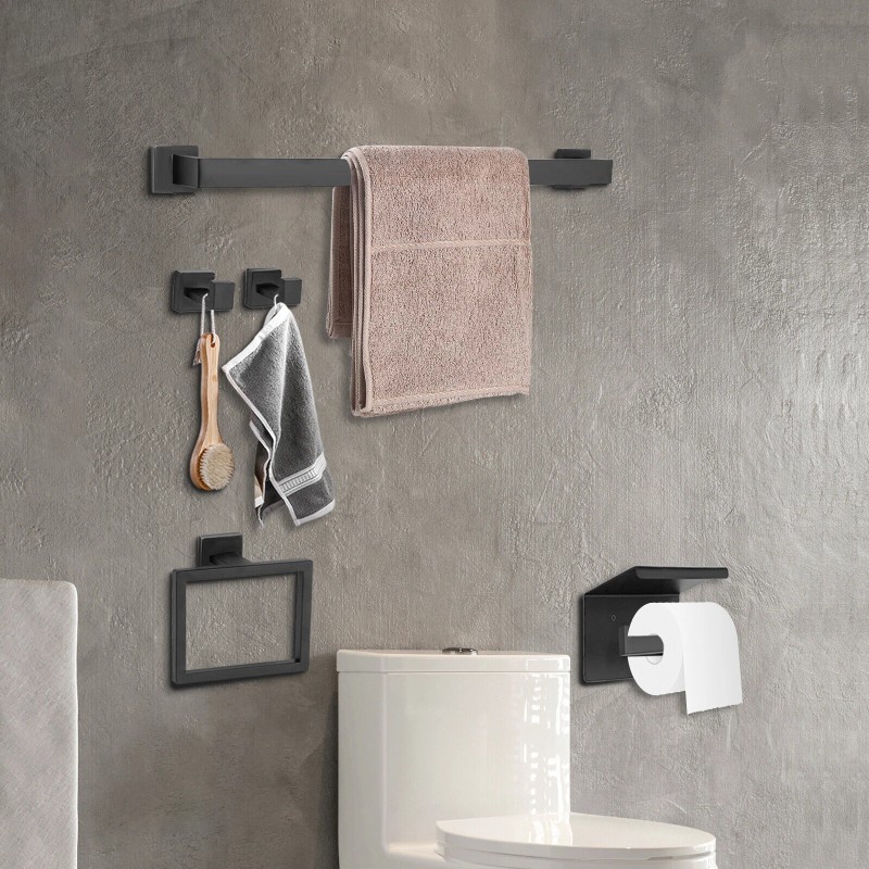 Unbranded 5pcs Bathroom Hardware Accessories Set Towel Bar Set Stainless Steel Black New