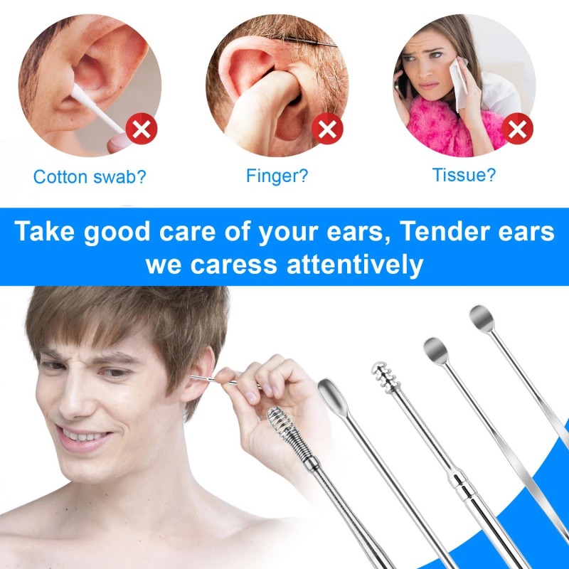 Unbranded 5PCS Complete Ear Pick Cleaning Set - Spiral Tool, Spoon, Ear Wax Remover, Clean