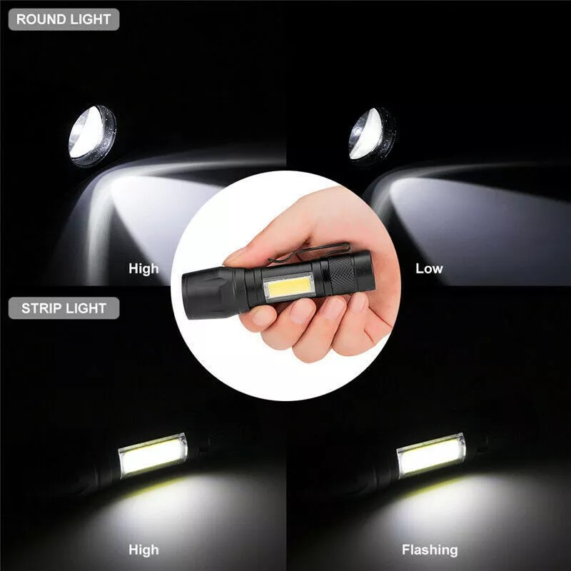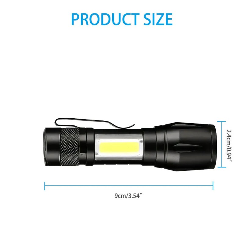 - 3 LIGHT MODES & ZOOM- High powered rechargeable flashlights fully zoomable from wide to narrow beam. Features 3 adaptable settings: High Brightness, Strobe Brightness.Side COB white light Brightness. Adjustable focus for close or long range. can be used as a work light.