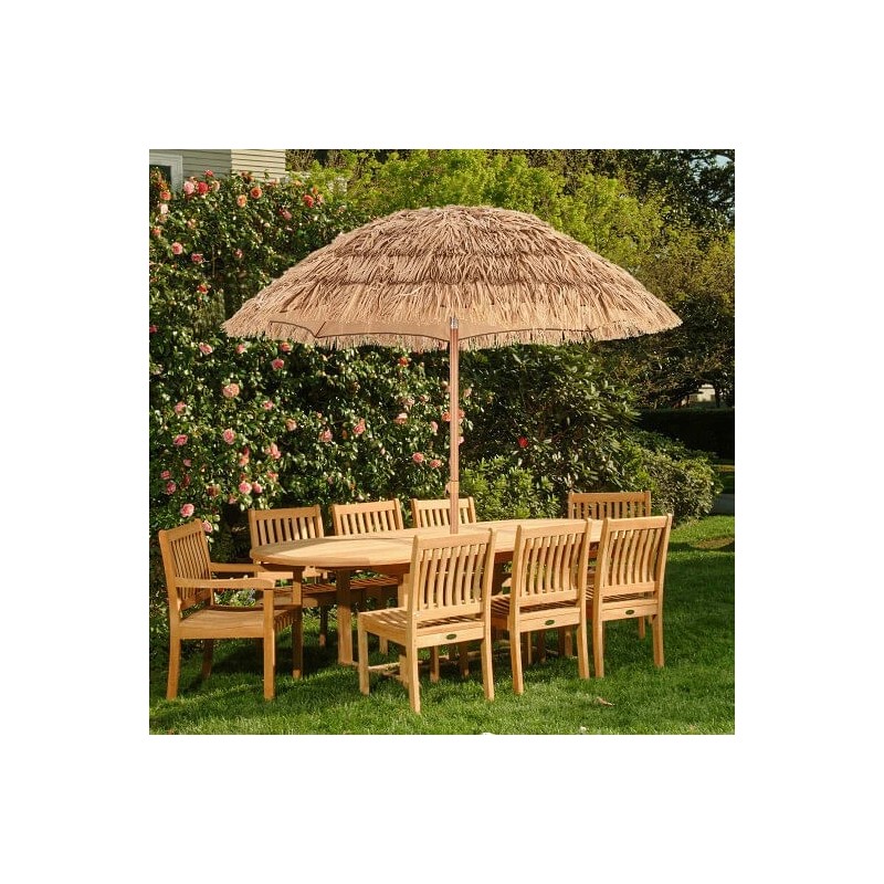 Unbranded 6.5 Feet Thatched Tiki Umbrella with Foldable Stand Push Button Tilt-Natural - C