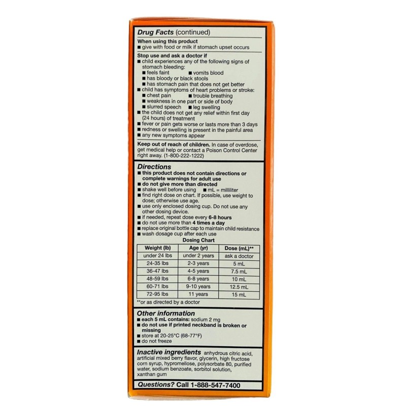 Unbranded 6-8oz Childrens Liquid Ibuprofen Oral Suspension DYE-FREE BERRY FLAVOR 100mg/5mL