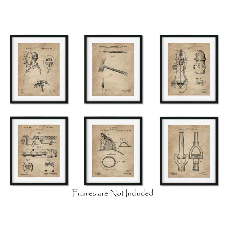 Unbranded 6 Firefighter Patent Art Prints 8"x10" Gift Idea for Firemen First Responder