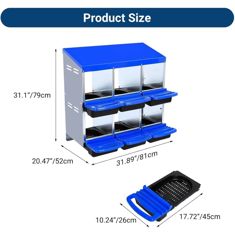 - Hands-Free Egg Collection: The chicken nesting box includes 7° sloped flooring with a non-stick surface, allowing eggs to automatically roll into the removable plastic tray without manual retrieval. The 2" raised edge on the chicken nesting box prevents egg loss while enabling visual checks, collecting eggs 3x faster than traditional nests.