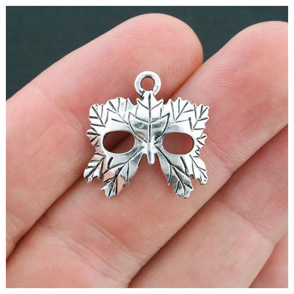 Unbranded 6 Mask Charms Antique Silver Tone Masquerade Leaf Mask - SC4044
