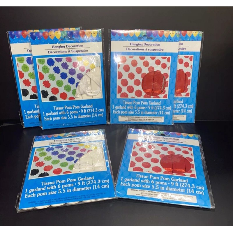 Unbranded 6 PACKS OF 9ftGARLAND/6 TISSUE POM POMS EACH Great Valentine Decoration EASY