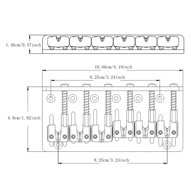 Unbranded 6 String Metal Bass L-Shaped Saddle Fixed Bridge Top Load Tailpiece Gold